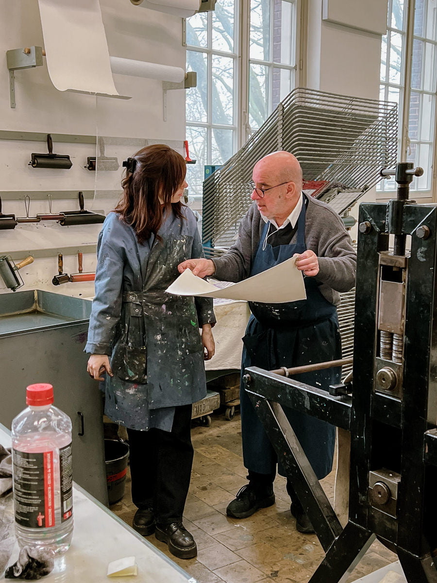 Britt is lerares aan een middelbare school en is ook eens met haar leerlingen naar het GA geweest: dat beviel supergoed! De leerlingen vonden het allemaal reuze interessant en een geweldig uitstapje. Dit inspireerde Britt weer om deze week meerdere technieken uit te proberen. Technieken die ze ook eens in de toekomst met haar leerlingen zou kunnen uitproberen, zoals cyanotype of droge naald etsen.
