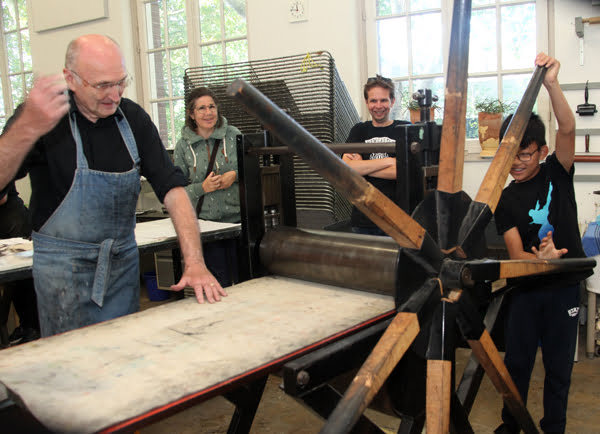 Kom kijken in de werkplaats waar kunstenaars, ontwerpers en liefhebbers aan het werk zijn om kunst en design te drukken. De hele dag zijn er makers aan het werk en geven de werkplaatsmeesters uitleg over de technieken. En misschien draai je zelf wel even aan het rad van onze drukpers. Naast een plek voor immaterieel erfgoed is het GA ook een plek waar je cursussen en workshops kunt volgen of handmatig gemaakte drukkunst kunt zien en kopen. Ervaar de geuren en kleuren in de werkplaats en de magie van het drukken.
